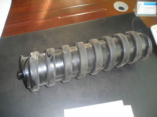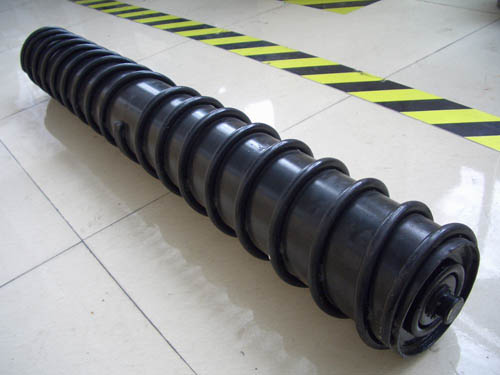 螺旋橡膠托輥是引進(jìn)國外先進(jìn)技術(shù),針對(duì)化工行業(yè)固體粘濕物料輸送時(shí)存在嚴(yán)重問題開發(fā)研制的科技成果.我公司專業(yè)從事皮帶機(jī)螺旋橡膠托輥的制造和銷售,該產(chǎn)品在國內(nèi)享有千家的用戶,還遠(yuǎn)銷東南亞各國。該產(chǎn)品的問世,從根本上解決了帶式輸送機(jī)普遍存在的腐蝕,粘輥、膠帶跑偏和撕裂等嚴(yán)重問題。具有結(jié)構(gòu)新穎、安裝維修方便、自定中心輸送平穩(wěn)、不粘輥、噪音小,能耗低及延長膠帶使用壽命特點(diǎn)。填補(bǔ)了國內(nèi)空白,并被多家部屬化工設(shè)計(jì)院納入通用設(shè)計(jì)規(guī)范。